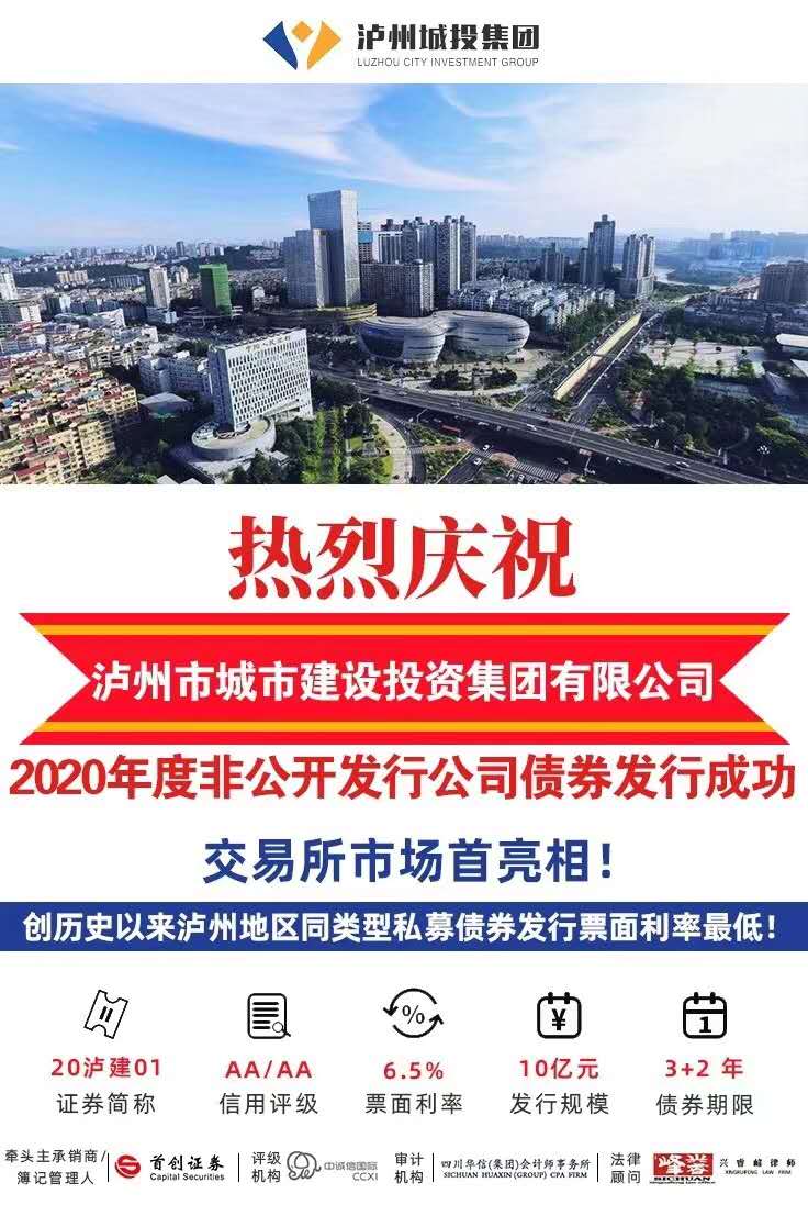 喜報(bào)!瀘州城投集團(tuán)2020年度首期非公開(kāi)發(fā)行公司債成功發(fā)行